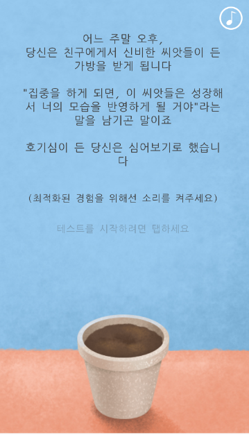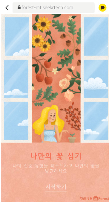 여기서 나만의 꽃심기 나의 집중유형을 테스트하고 나만의 꽃을 발견하세요 밑에 있는 시작하기를 눌러주자.