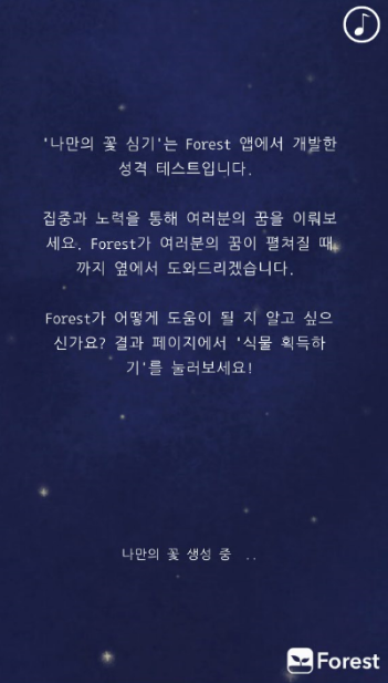 8개로 구성된 테스트를 끝내고 씨앗을 생성하면 나만의 꽃이나 식물이 나온다.