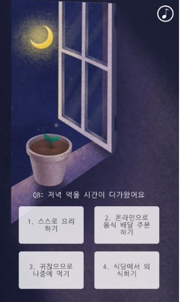 끌리는대로 3번을 클릭했다.(누르는 종류의 음악에 따라서 배경음이 변한다.)