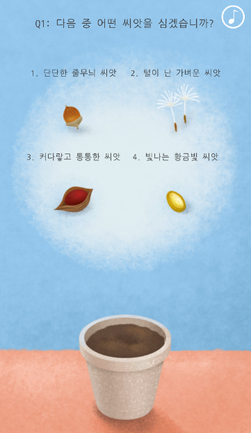 1번 문제로 나온건 어떤 씨앗을 심을것인지 물어본다.