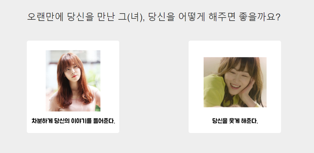 어느정도 이상형부분은 거의 가깝게나왔고 나를 아는 테스트는 전혀 다른결과나왔네요.