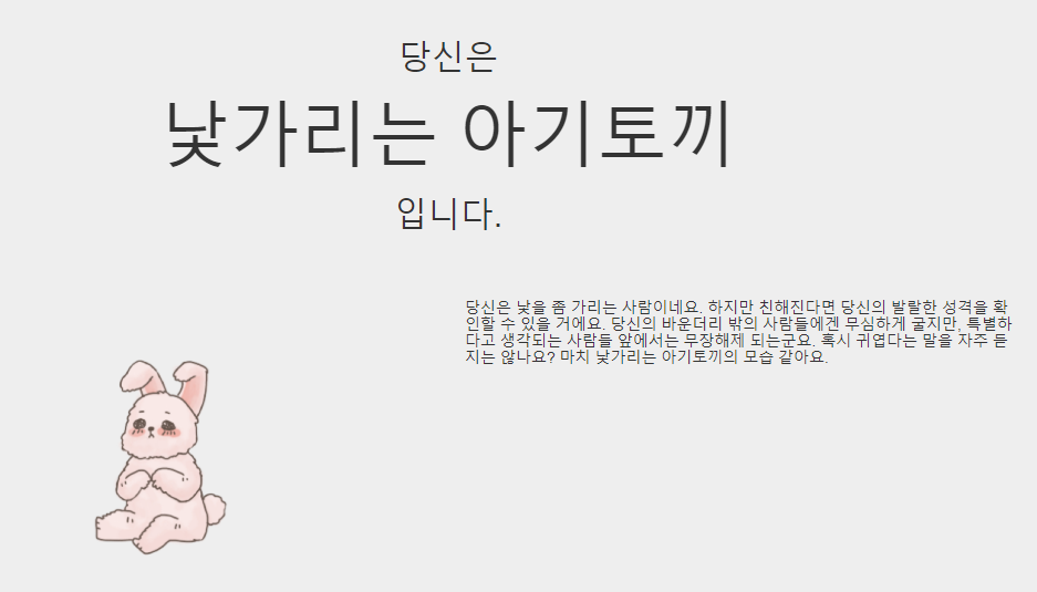 fonfon(폰폰) 이상형 테스트 - 나 만들기! 결과로 낯가리는 아기토끼가 나왔습니다. ㅋㅋ