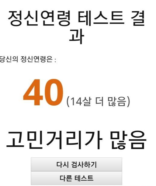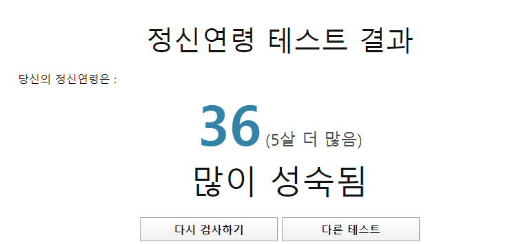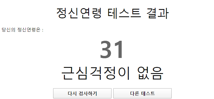 정신연령 테스트 결과로 저는 31 동일하게 나왔습니다.