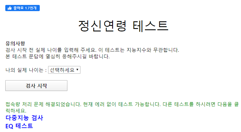 먼저 정신연령 테스트는 위의 링크에서 진행이 가능합니다.