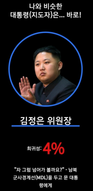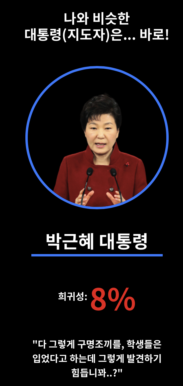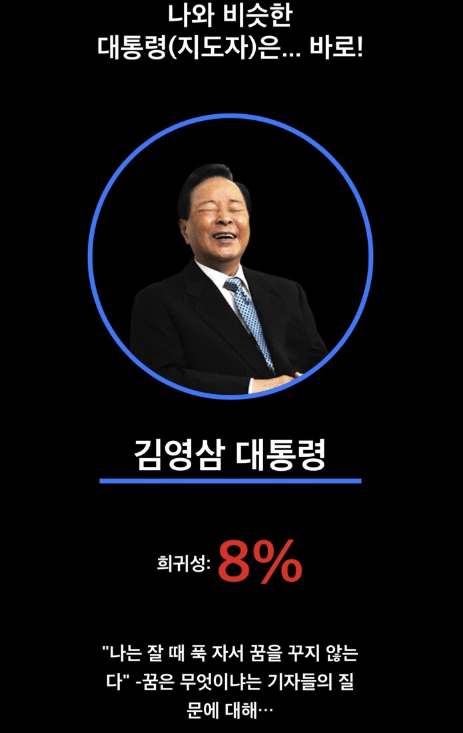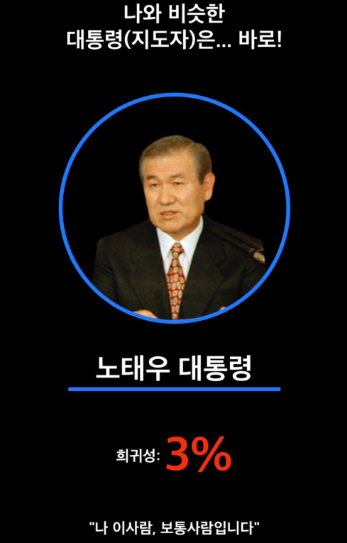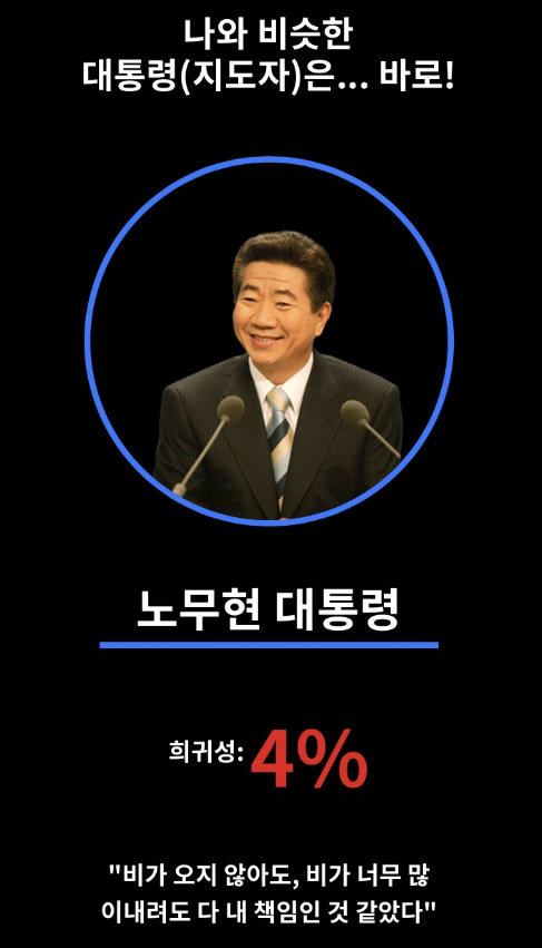 내가 고른 답을 통해서 나와 비슷한 유형의 대통령(지도자)가 나옵니다.