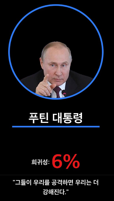 푸틴 - 희귀성 6% "그들이 우리를 공격하면 우리는 더 강해진다."