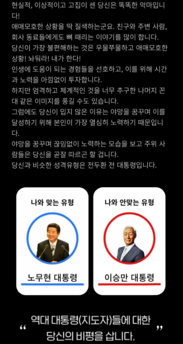 나는 어떤 대통령(지도자)과 비슷한 유형일지 지금, 확인해보세요.