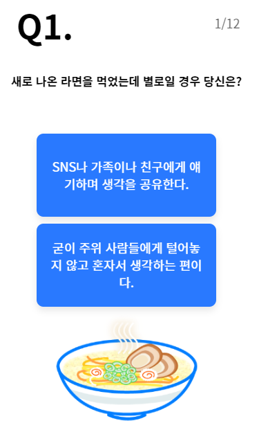 문항은 총 12가지로 진행이되며 보기는 2개 입니다.