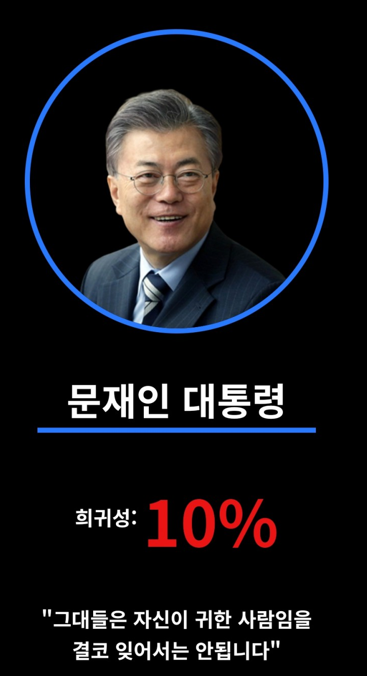 문재인 - 희귀성 10% "그대들은 자신이 귀한 사람임을 결코 잊어서는 안됩니다."