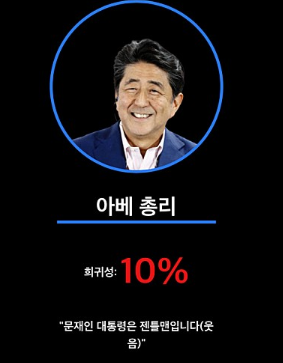 아베 - 희귀성 10% "문재인 대통령은 젠틀맨 입니다."
