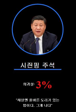시진핑 - 희귀성 3% "세상엔 올바른 도리가 있는 법이다. 그게 나다."