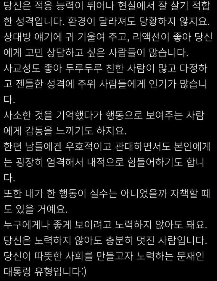 이글에서는 저의 테스트 결과와 함께 나오는 몇몇 다른 대통령들의 성격도 작성을 해볼게요.