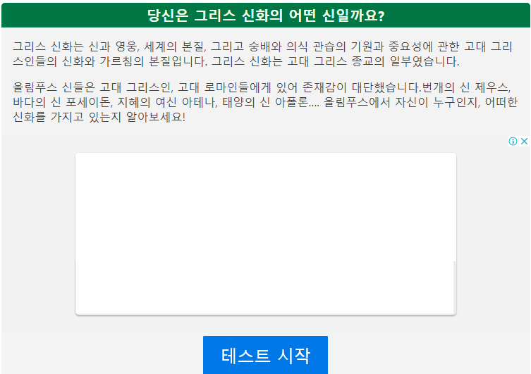 간단하게 테스트 전에 그리스 신화에 대한 설명이 5줄로 설명이 되어있습니다.