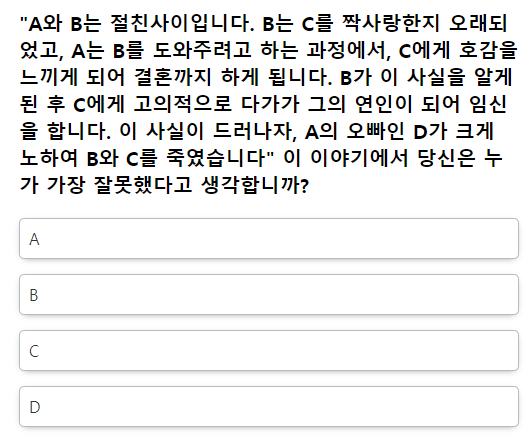 (비현실적인 문항도 있고 현실적인 문항으로 구비가됨.)