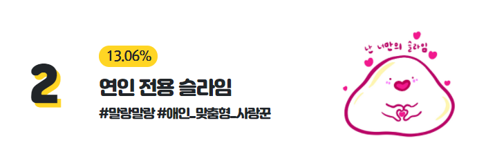 2등은 연인 전용 슬라임으로 13.06%의 사람이 속해있네요.