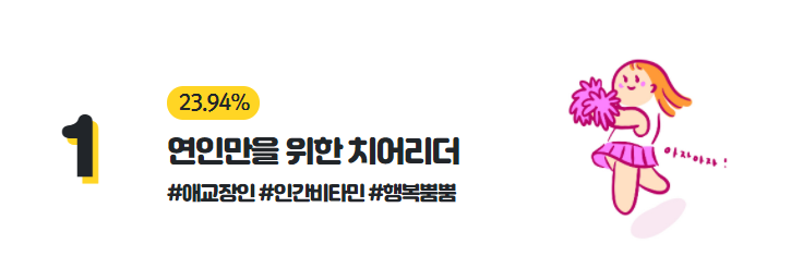 1등은 연인만을 위한 치어리더 입니다. 23.94%로 4/1정도가 이에 속한다고 합니다.