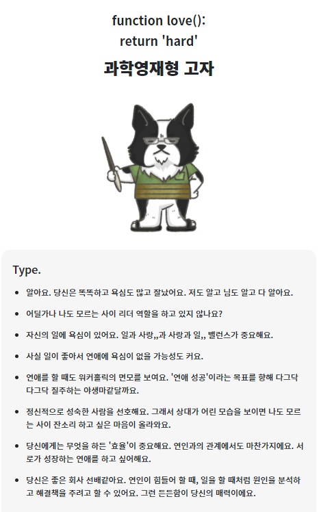 필자의 연애고자 유형 테스트의 결과는 과학영재형 고자