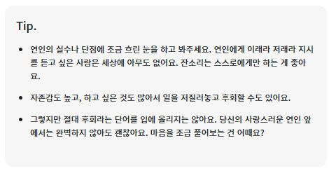 독특하게 연애의 팁까지 제공을 해주고 있다.