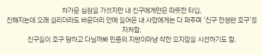 실제로 남에게는 관대하진 않지만, 친구에게 만큼은 어느정도 배려를 하는 타입이기 때문입니다.