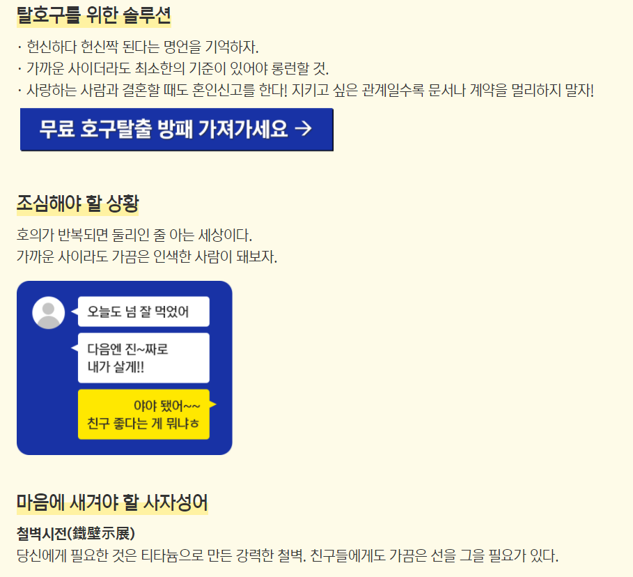 마음에 새겨야 할 사자성어로 철벽시전이 나왔는데, 이것도 마음에 정말로 새기고 호구탈출을 하긴해야겠다고 생각을 했습니다.