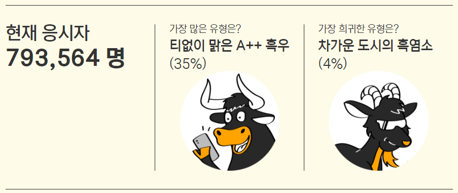 호구 성향 테스트에서 결과로는 총 8가지 타입이 나오며 대다수 35%의 경우는 티없이 맑은 A++ 흑우가 나오며 희귀한 유형은 4%인 필자가 나온 차가운 도시의 흑염소가 나옵니다.