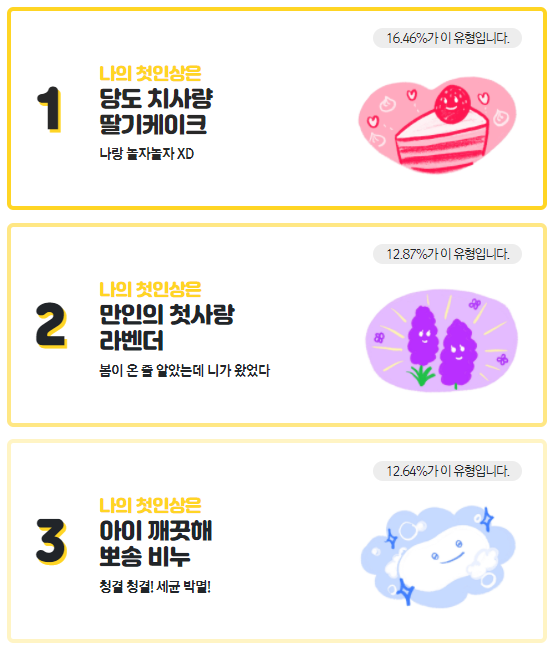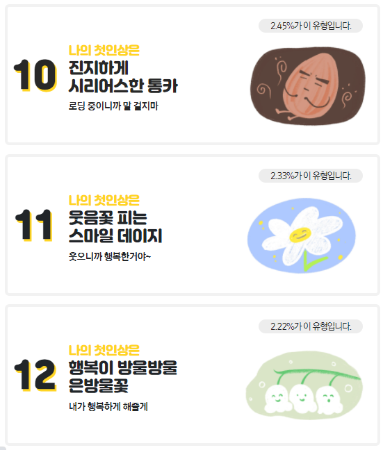 정말로 첫인상이 필자의 결과처럼? 사람들이 보는지는 의문이지만, 재미로 한번쯤 해볼만은 했던것 같습니다.