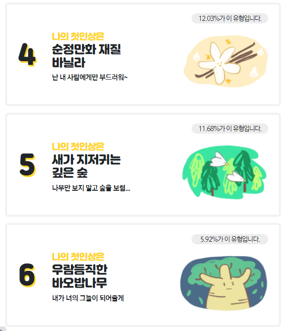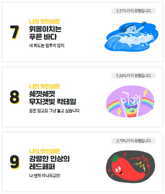 정말로 첫인상이 필자의 결과처럼? 사람들이 보는지는 의문이지만, 재미로 한번쯤 해볼만은 했던것 같습니다.