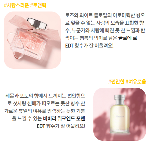 ‘향‘은 첫인상뿐만 아니라 ‘생각’과 ‘행동’에도 큰 영향을 미친다고 해요. 미미한 꽃향기가 있는 방에서 쓴 글이 향기가 없는 방에서 쓴 글보다 ‘행복’관련 단어가 3배 더 많이 사용되었다는 연구결과도 있으니 말이죠.
