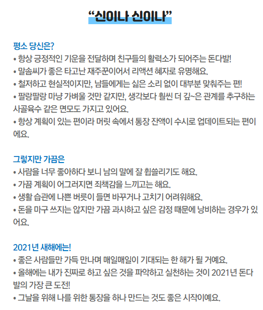 ⦁ 새로운 것을 반드시 이뤄내야하는 색다른 해가 될 지도!