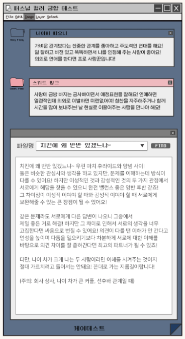 번외로 나온 결과를 통해서 나와 상대의 색을 넣어서 궁합까지도 볼수가 있습니다.